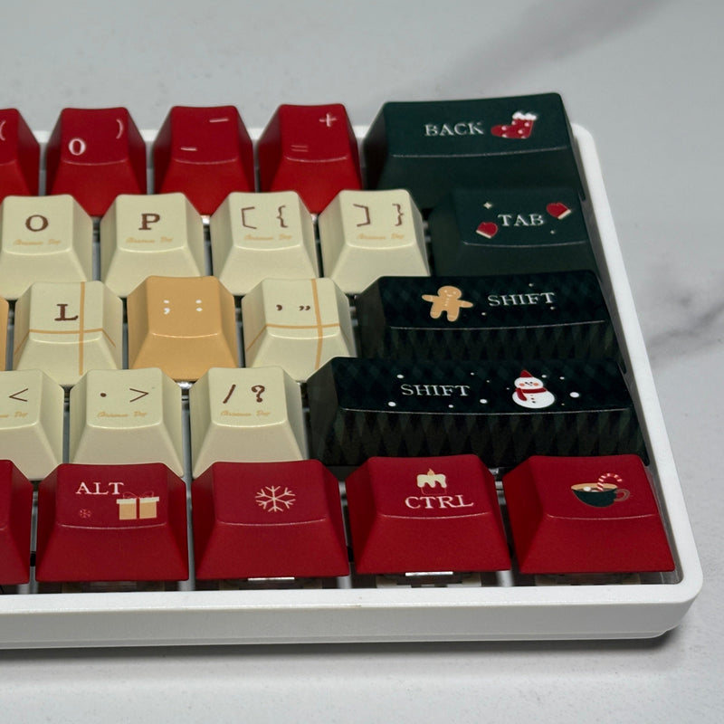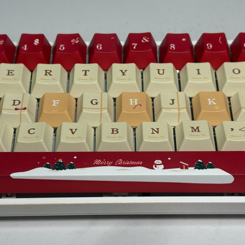 The Christmas Night keycap set brings seasonal warmth to your desk with deep greens, snowy whites, and festive reds. Designed in Cherry profile, it offers a smooth, ergonomic typing feel that balances comfort with familiarity. The five-side dye-sublimation process ensures the holiday artwork is sharp and fade-resistant, while non-shine-through legends preserve a clean matte surface. Made from premium PBT, these keycaps resist oil and shine, holding their textured finish throughout long winter sessions.
