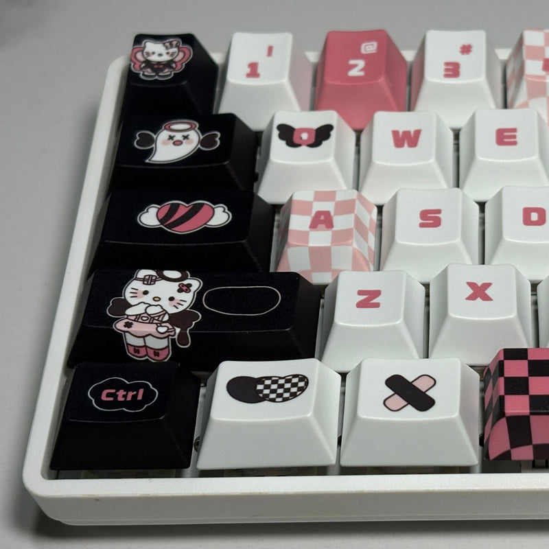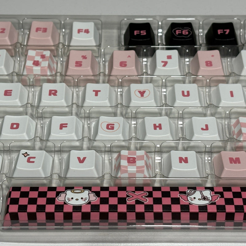 The KT Cat keycap set brings sweet, cute-meets-cool style to your desk. Designed in Cherry profile (the updated “original factory” sculpt, lower than OEM), it offers a smooth and ergonomic typing feel that’s easy on the hands. The five-side dye-sublimation process keeps artwork vivid and fade-resistant, while non-shine-through legends preserve a clean matte finish. Made from premium PBT, these caps resist oil and shine, holding their textured surface through long use.